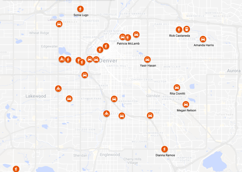 The map also visualizes trends. Fatalities on Alameda Street, Federal Boulevard and especially Colfax Avenue show Denver’s failure to address street safety on its high-injury network, the five percent of streets where half of all traffic deaths take place. Despite repeated calls for fast, inexpensive road treatments which could save lives, Denver officials continue to drag their feet before approving a $6 million request the Denver Streets Partnership says could start to address these fatalities next year.