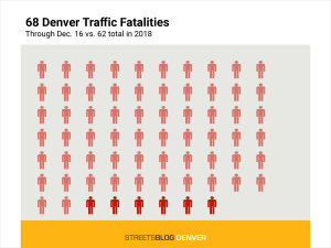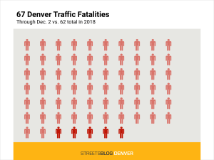 Two pedestrians have died on Denver streets since the last Traffic Violence Report. The number of road deaths this year is now 70, compared to 61 on Dec. 25 of last year, a 15 percent increase.