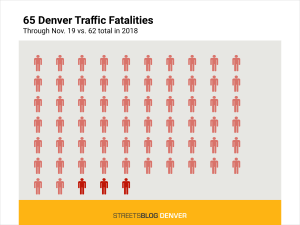 Two pedestrians have died on Denver streets since the last Traffic Violence Report. The number of road deaths this year is now 70, compared to 61 on Dec. 25 of last year, a 15 percent increase.